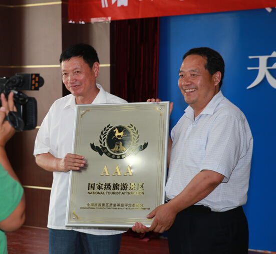 镇安县委常委宣传部长陈正斌向塔云山景区授AAA景区牌