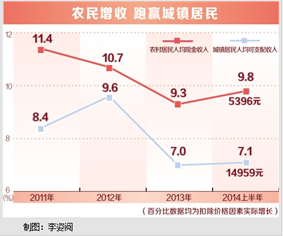 上半年,人均现金收入实际增9.8%,收入渠道不断增多