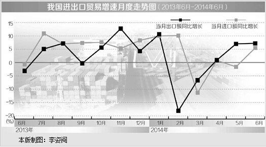 外需回稳。6月,世界银行发布的全球经济展望报告预计,全球经济将在今年下半年逐渐加速,全年增速可达2.8%,较2013年提升0.4个百分点。