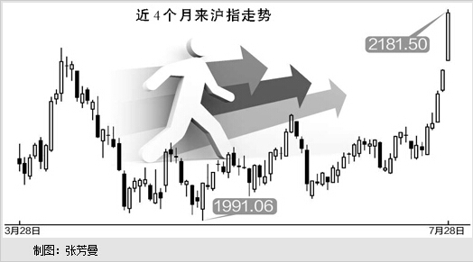 不只是上证综指急剧拉升,深交所的几大板块也全线上扬:深成指报收7808.66点,上涨230.54点,涨幅3.04%,成交1533.79亿元;创业板重新站上1300点,报收1314.53点,上涨28.76点,涨幅2.24%,成交224.29亿元。两市量能明显放大。