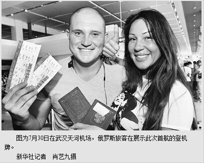 本报武汉7月30日电 (田豆豆、孙红良)7月30日15时10分,南航空客A330飞机从武汉天河国际机场起飞,将直达莫斯科谢列梅捷沃国际机场。这是我国中部地区首条直飞俄罗斯的航线。