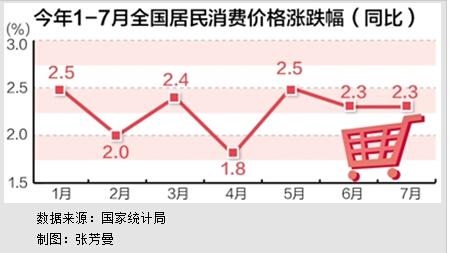 全国居民消费价格指数(CPI)7月份同比上涨2.3%