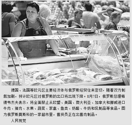 此外,受欧洲与俄罗斯相互升级制裁的影响,欧元区经济形势将受到进一步影响。“德、法等欧元区主要经济体都与俄罗斯有着密切的经贸往来,制裁行动势必会给这些国家企业造成很大影响。”玛琳说。有欧洲媒体分析认为,随着制裁措施的持续实施,欧元区对俄罗斯的出口如果下降1/4,将会使欧元区国内生产总值下降0.18%。