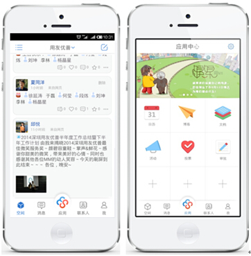 今天,用友优普再次发力企业社交领域,并结合当前最新技术与应用特性,通过打造全新“企业空间”,旨在帮助企业建立以人为中心,连接所有员工、客户与消费者、伙伴,聚合并有效使用产业链庞大多样资源的企业社交平台。
