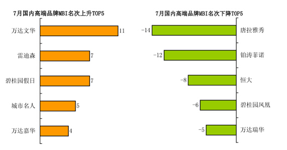在7月指数下降酒店品牌中,万达瑞华降幅最明显,下降73.10%;其次是铂涛菲诺,降幅为63.74%。与此同时,唐拉雅秀、恒大和碧桂园凤凰也降幅较大,分别下降59.49%、50.00%和45.86%,从而跌出MBI榜单TOP20。值得关注的是,这五大品牌的MBI下降均是由媒体指数的大幅下降引致的。