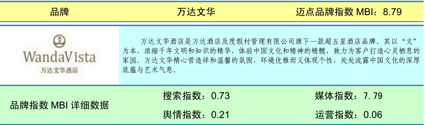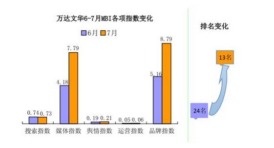 表:万达文华 迈点品牌指数MBI详细数据(7月)