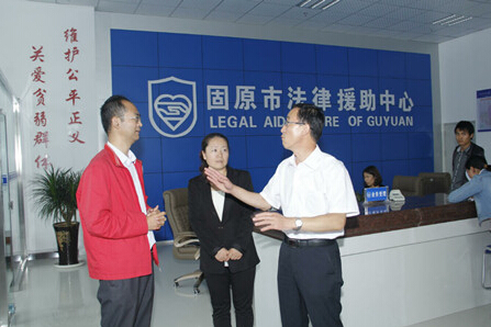 接着,团队一行还走访了被司法部授予“第四届全国法律援助工作先进集体”的固原市司法局法律援助中心。在工作人员的带领下,公益行法律团队认真了解了法律援助中心的相关司法建设工作情况——法律服务短信三百句、百姓常用法律知识问答、全市执业律师手册、私密谈话时、法律援助热线电话接听室等等,这些富有创新、利民为民的举措,让大家获益匪浅。