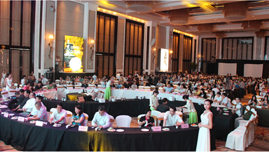 本次发布会有600多名茶友参与,康帝酒店中国厅座无虚席,一场发布会用7块LED屏进行联播,而且在新品发布的时候,并不同以往传统的揭幕仪式,而是采用最新颖的方式:柏联艺术团的工作员手拿产品打着太极,随着追光灯一款款亮相,可谓是真正做到了人茶合一,人在草木间,是为茶,此次的产品发布形式,以最直观的方式诠释了柏联和太极禅崇尚自然、归真的一种理念。
