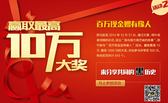 据了解,网友们只要以图片、文章、视频等形式,说出“我与南方黑芝麻的故事”,也就是过去三十年中南方黑芝麻留给各位网友印象最深刻的事情,即可参与活动,赢取最高10万、最低1000元的大奖。另外活动还设置了参与评审奖200名,奖金也有500元,各类奖项共计543个。而整个活动将持续到12月31日。