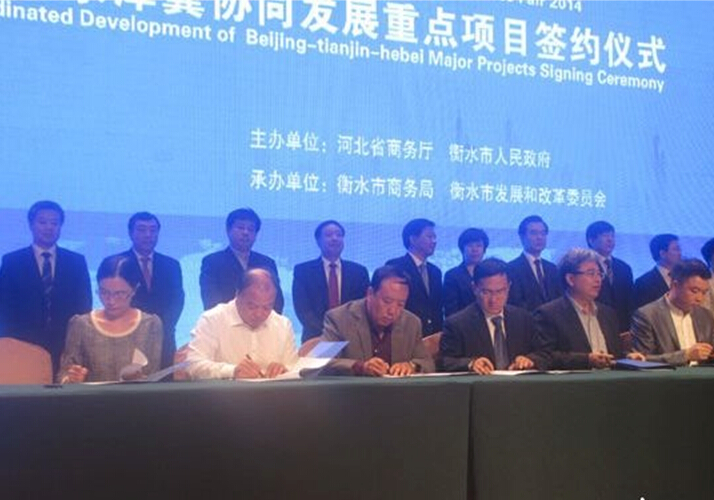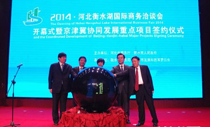 9月18日上午,由河北省商务厅、衡水市人民政府主办的2014·河北衡水湖国际商务洽谈会开幕式暨京津冀协同发展重点项目签约仪式在衡水泰华雅阁温泉大酒店举行。