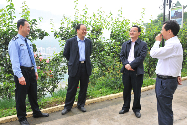 铜仁市委常委、政法委书记、公安局局长张涛(右二)到思南县指导工作,左一为思南县委书记胡洪成;右二为思南县委常委、政法委书记、公安局长史大高。