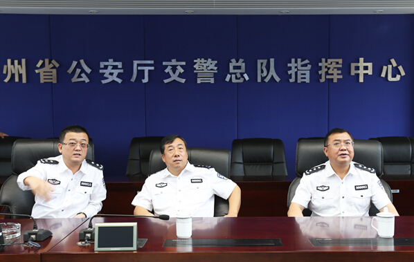 贵州省人民政府党组成员、省长助理、省公安厅长孙立成(中)率省公安厅常务副厅长赵翔(右),省公安厅党委委员、省厅交管局局长王健伍(左)10月1日坐镇交管局指挥中心调度全省交通安全保卫工作。