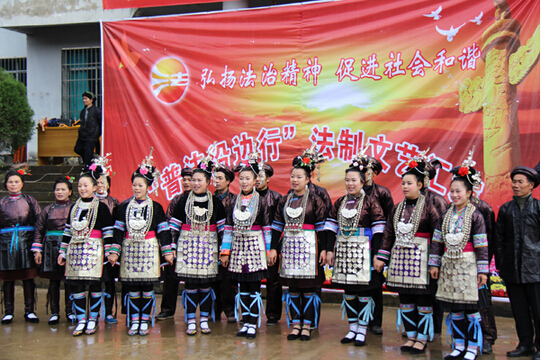 “侗族大歌唱起来,普法小品演起来……”在贵州从江县斗里乡苗族同胞一年一度的芦笙节上,侗乡群众载歌载舞,吹起芦笙、唱起“多耶”歌,宣传国家法律法规。民间节日成为黔桂两省(区)的各县市司法部门举办的“普法沿边行”重要载体。
