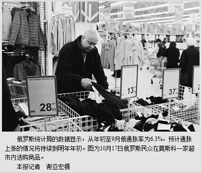 与此同时,高通胀的隐忧也已显露出来。俄统计局数据显示,从年初至9月俄通胀率为6.3%,全年的通胀率约为8%,这将是3年来的最高值,通胀上涨的情况预计将持续到明年年初。今年的资本净流出额已超过750亿美元,预计全年将超900亿美元;农产品价格也随着供货源减少而水涨船高,其中各种肉类价格相比年初的增幅均超过了20%;俄罗斯石油公司等大型企业因制裁而融资受到限制,不得不向政府求援。