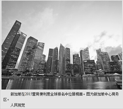 报告表示,东亚和太平洋地区的营商环境继续得到改善。该地区各经济体仅去年一年就在报告监测的范围内实施了24项监管改革。新加坡在2015营商便利度全球排名中位居榜首,中国香港特别行政区排名第三。