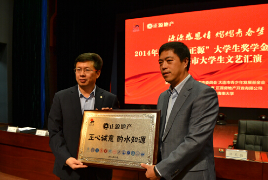 11月19日,由共青团大连市委员会、大连市希望工程办公室、大连市青少年发展基金会和正源房地产开发有限公司共同主办,共青团大连海事大学委员会承办的“源源感恩情 熠熠青春梦”2014第十届“正源”大学生奖学金颁奖典礼暨大连市大学生文艺汇演在大连海事大学新大学生活动中心报告厅举行。