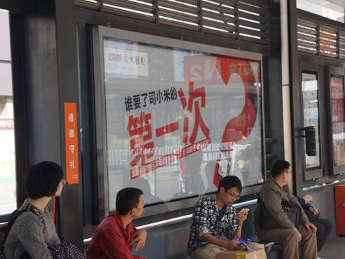 在广州天河商圈BRT公车站等车的徐小姐表示,11月17日,当她刚踏入BRT,便被迎面而来的大幅广告——“谁要了司小米的第一次”吸引,很久没遇到这么让人浮想联翩的事情了!。