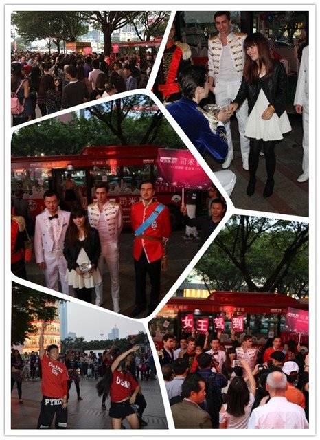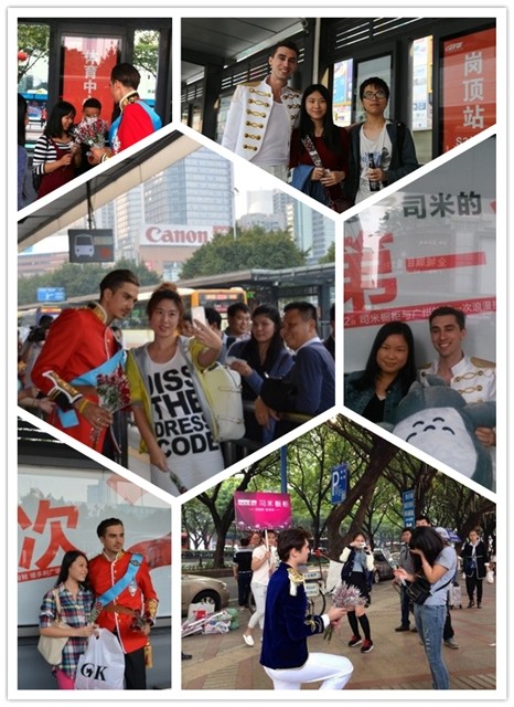 体育中心、岗顶BRT公交站、维多利广场、购书中心等天河区最繁华的商区,身穿欧洲贵族服装、手捧鲜花的外籍美男穿越而来,亲手赠送玫瑰,小伙伴们纷纷与男神合影,现场十分火爆。