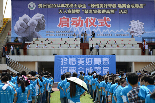 贵州省2014年在校大学生“珍惜美好青春远离合成毒品“万人宣誓暨禁毒宣传进高校活动启动仪式”。