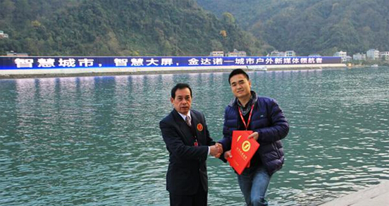 亮屏当天恰逢宜昌市长阳县土家族自治县成立三十周年县庆之日。世界纪录协会香港高级认证官吴华江先生经实地测量,对该项目进行现场认证,宣布该两面翻LED显示屏实测长度为360米,高7米,总面积2520平方米,创造了全球最大两面翻LED显示屏和跨度最长的两面翻LED显示屏的两项世界纪录。随后,在现场数百名当地群众的见证下,世界纪录协会香港代表、高级认证官吴华江向设计、制作方四川金达诺科技有限公司的代表颁发了“世界最大的两面翻LED显示屏”和“世界上跨度最长的两面翻LED显示屏”两项世界纪录证书。