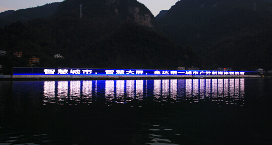 2014年12月8日,湖北省宜昌市长阳土家族自治县清江边,长360米,高7米,总面积达2520平方米的两面翻LED显示屏正式亮屏。