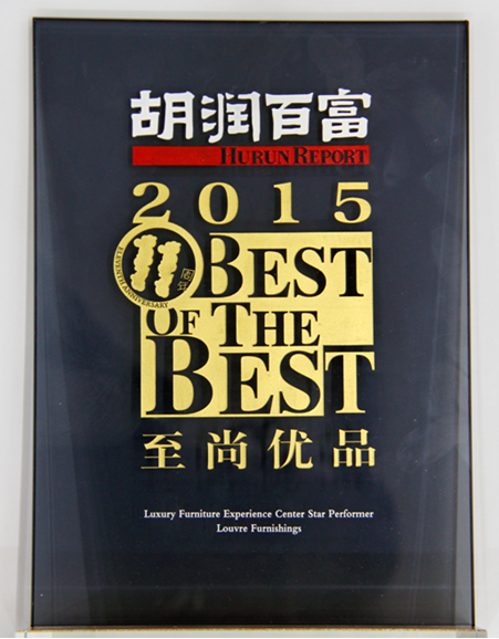 罗浮宫上榜2015胡润百富至尚优品榜单。1月29日,“2015胡润百富至尚优品颁奖盛典”在上海举行,罗浮宫家居在盛典上获颁中国千万富豪青睐的“奢华家居体验中心”荣誉,与蒂凡尼、路易威登、阿斯顿•马丁等国际知名奢华品牌一同荣膺最佳表现荣誉。