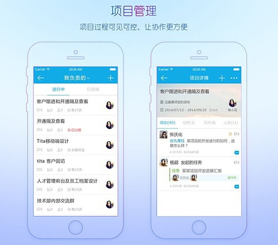 当你管理十名员工的时候,可以吆喝一声大家都听见了;当你管理一万名员工的时候,你喊破嗓子可能只有几十个人听见。但是在tita平台上,可以实现上级和员工的无缝沟通。比如针对某一项目,企业领导可以在tita平台上新建一个项目,不论是总公司还是分公司的员工,领导都可以把相关的人员拉进项目,在项目里将任务层层细分到每个员工身上,领导也可根据工作线索或执行地图,隔级查看、快速追踪到项目的具体执行情况;如果产生不同的意见,还可以在tita里随时提出,并@相关人员,从而实现企业跨空间、跨地域的沟通。