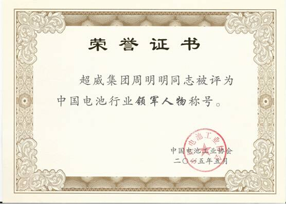 周明明董事长荣获“中国电池行业领军人物”称号(奖杯)
