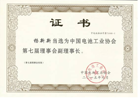 杨新新总裁当选为中国电池工业协会第七届理事会副理事长