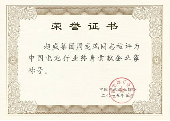 周龙瑞副董事长荣获“中国电池行业终身贡献企业家”称号