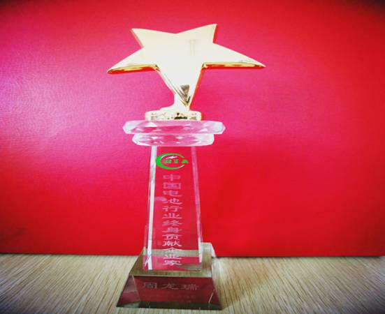 周龙瑞副董事长荣获“中国电池行业终身贡献企业家”称号(奖杯)