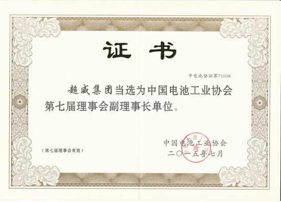 超威集团当选为中国电池工业协会第七届理事会副理事长单位