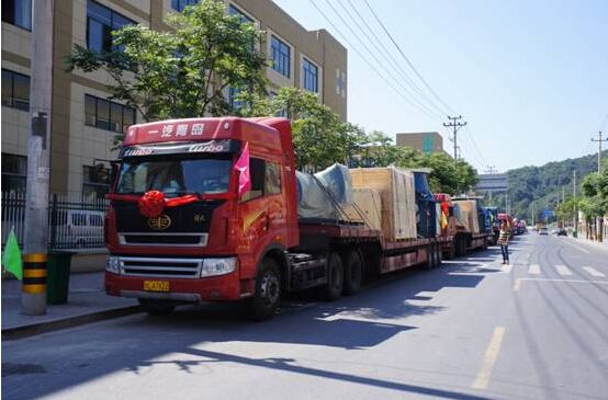 11辆重卡上装着2条铁矿石破碎筛分生产线运往出口蒙古国