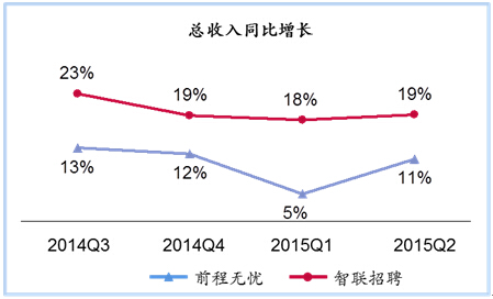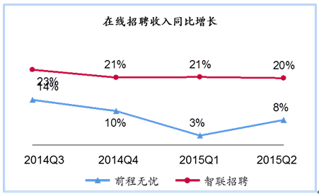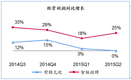 通过以上的比较可以看出,智联招聘在多个关键财务指标上一直保持高增长,且增速均超过前程无忧。