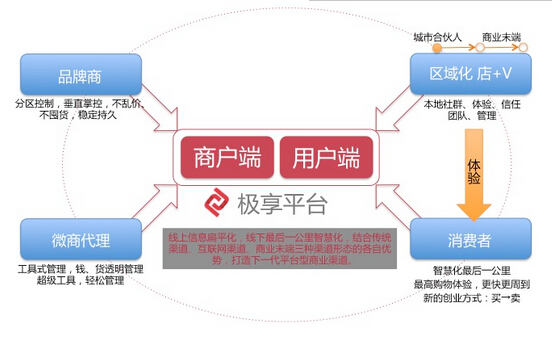 极享科技将线下体验店和互联网结合,网店结合形成双驱动。线下体验店提供温馨、舒适的交流、洽谈、分享环境,实现人人为店主,并实现开通10000家体验店;线上实现平台流量的引入,让消费者对产品更放心,让渠道更稳定,让品牌更安心。解决微商无归属感、产品售后等一系列的问题。