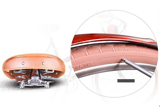 特别值得一提的是全皮包裹前横梁。90前们都熟知,这个位置曾一度是热恋中女友们的大爱专座,有无数经典剧照可证。但惨痛的事实却是,传统自行车在这个位置的冰冷质感,除了硌屁股,实在感受不到太多浪漫。