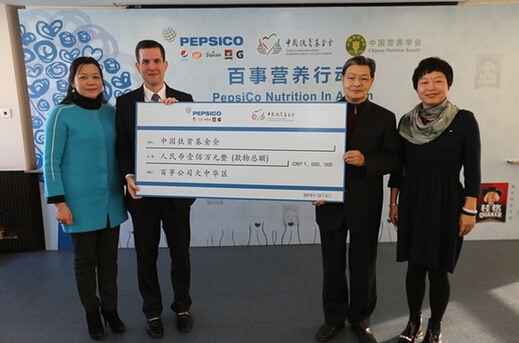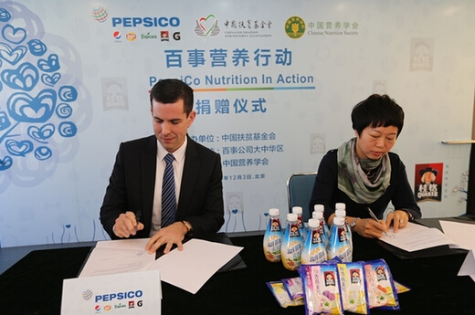新华食品北京12月3日电 今天,百事公司大中华区携手中国扶贫基金会和中国营养学会,宣布在华正式启动“百事营养行动”。百事公司将向中国扶贫基金会捐赠款物共计100万元人民 币,为云南省昭通市贫困地区学龄儿童提供营养餐和开展营养知识教育活动,旨在帮助提高中国贫困农村地区学生营养水平和健康意识,促进青少年健康成长。