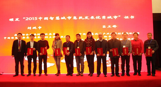 (颁发“2015年度中国智慧城市优秀惠民应用案例”证书)