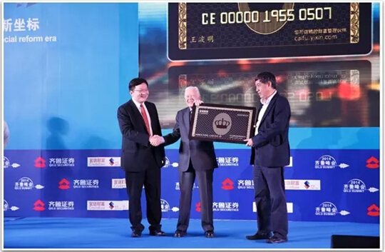 「 唐宁为美国前总统吉米.卡特颁发宜信财富首张贵宾黑卡 」