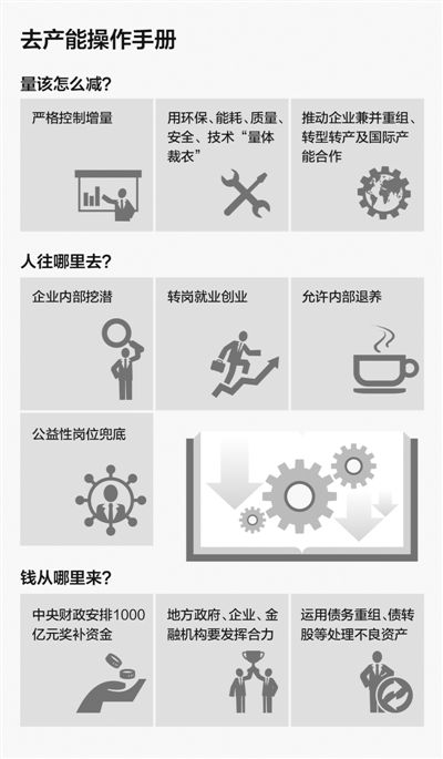 说起去产能,人们最常用的比喻是“壮士断腕、刮骨疗伤”。之所以如此痛苦悲壮,盖因去产能既牵涉一家家企业的核心利益与未来前途、一户户家庭的生计和命运,同时又面临着时不我待的紧迫形势。产能规模如何压减、企业员工如何安置、资产负债如何处理……诸多难题交织之下,惟有综合施策、逐一击破,方能渡过难关、转危为安。