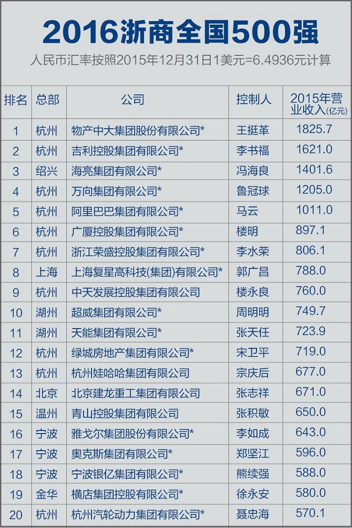 5月19日,以“活力浙商:新动能新经济”为主题的浙商(投融资)大会在宁波举行。会上,发布了2016浙商全国500强名单,超威集团及其控制人周明明以营收749.7亿元,名列第10位。
