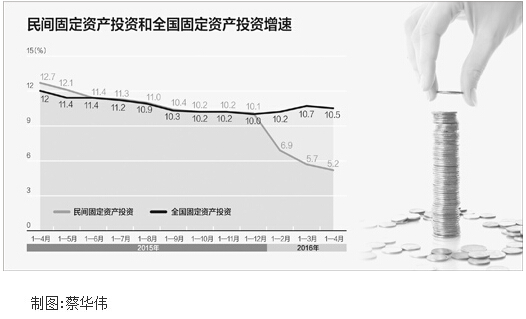 民间投资是稳增长、调结构、促就业的重要支撑力量。进入2016年,民间投资增速持续回落,自2012年有该统计数据以来首次低于全社会投资增速水平,颇为引人关注。民间投资怎么了?缘何增速持续放缓?怎样才能更快些呢?