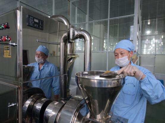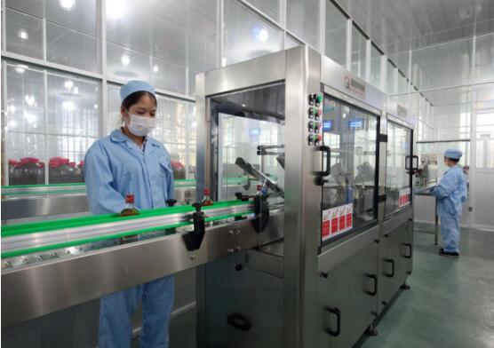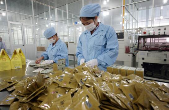 礼米公司员工在生产车间操作养生茶的流水线工艺