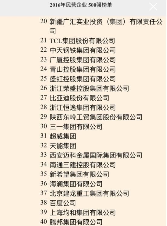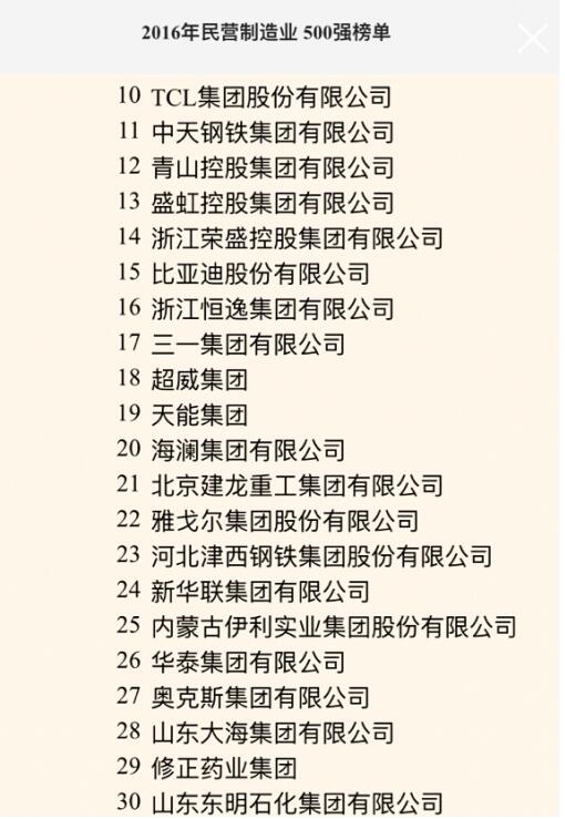 2016中国民营企业500强榜单揭晓 超威集团以排名第31位继续领跑电池行业