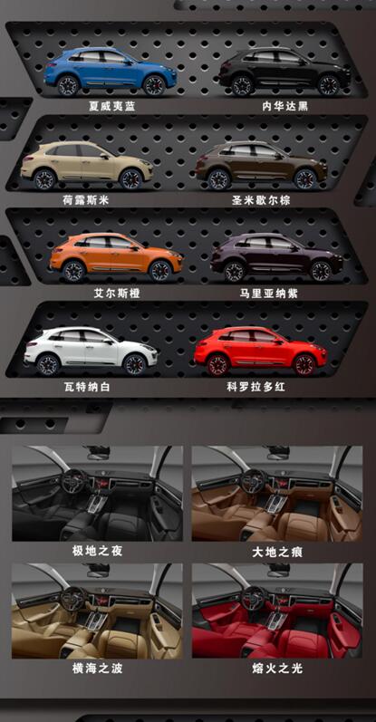 众泰SR9除了造型非常亮眼之外,多种外观和内饰的配色风格也迎合了众多消费者的不同喜好。众泰SR9的设计人员选取选取了8种世界著名地貌特色作为新车的外观颜色命名,极具风格,分别是:“瓦特纳白”、“夏威夷蓝”、“艾尔斯橙”、“圣米歇尔棕”、“科罗拉多红”、“内华达黑”、“荷露斯米”、“马里亚纳紫”。