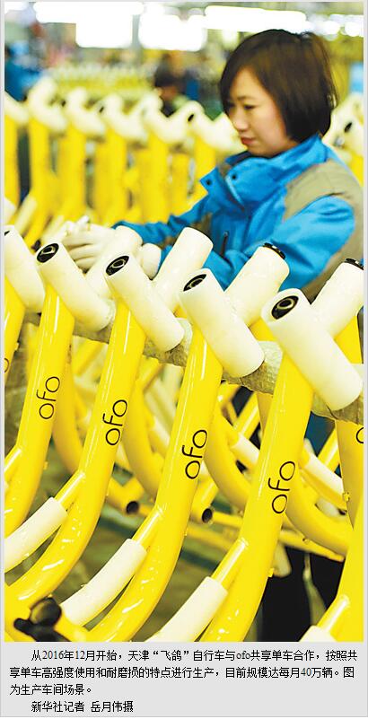 “国家提出‘互联网+’战略之后,自行车行业也在积极向互联网模式转变。ofo创造的商业新模式很有价值和新意,走在了世界互联网创新的前沿。”天津飞鸽车业发展有限公司总经理张金瑛表示,共享单车模式为传统自行车产业带来了一股春风,“它对传统制造业的放大能力和带动效果也十分突出,激发了新的内在需求,开启了新的市场空间,催生了新的经济增长点。”