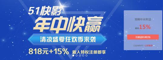 第四,要选对购买时机。P2P行业虽然起步较晚,但是它的竞争却异常激烈,很多平台为了吸引客户会推出特别的优惠活动。比如我们上文提到的51快影互联网金融平台,在7月期间就推出了投资再享奖励活动,奖励最高可大3000元。再比如,它对新注册的用户也有特殊的奖励政策,注册就送818元理财大礼包。诸如此类的活动也是增加投资回报的一种方式,抓住了也可以增加收益。