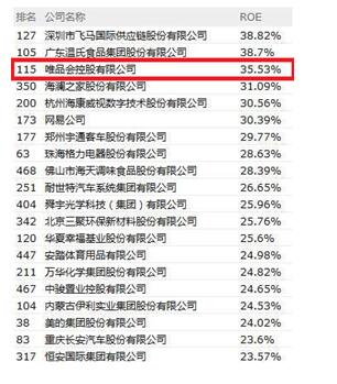 值得一提的是,财富中文网近日发布最新的 《财富》中国500强排行榜,唯品会同样凭借特卖模式与供应链优势在榜单中表现亮眼,位居中国电商三甲之列。其中,唯品会净资产收益率高达35.53%,在中国500强净资产收益率(ROE)最高公司中居第3位。
