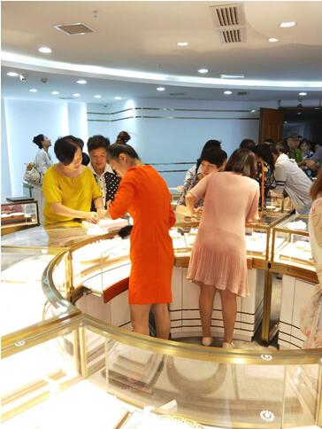随后,公司领导及嘉宾纷纷步入南昌旗舰店进行参观,轻奢主义的装修处处透露出一种典雅的风格,在璀璨的灯光交映下,展示柜中的各种金饰熠熠生辉,无论是南昌旗舰店气派非凡,还是新颖别致的金饰,每一处细节都赢得了大家由衷的赞赏。该旗舰店地址在江西国际珠宝城南昌市洪城路318号21楼。