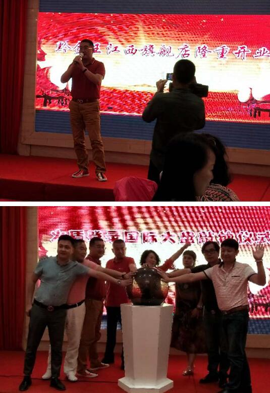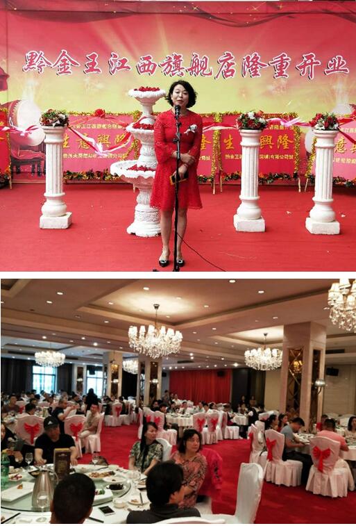 2018年6月3日,黔金王江西南昌旗舰店盛大开业,由深圳蓝海环球财富管理有限公司董事长、黔金王的品牌创始人桑总,黔金王江西运营中心的腾总,江西珠宝协会众多知名人士以及南昌珠宝首饰大伽等重要领导及嘉宾合影并剪彩,共同见证了本次开业的盛况时刻。